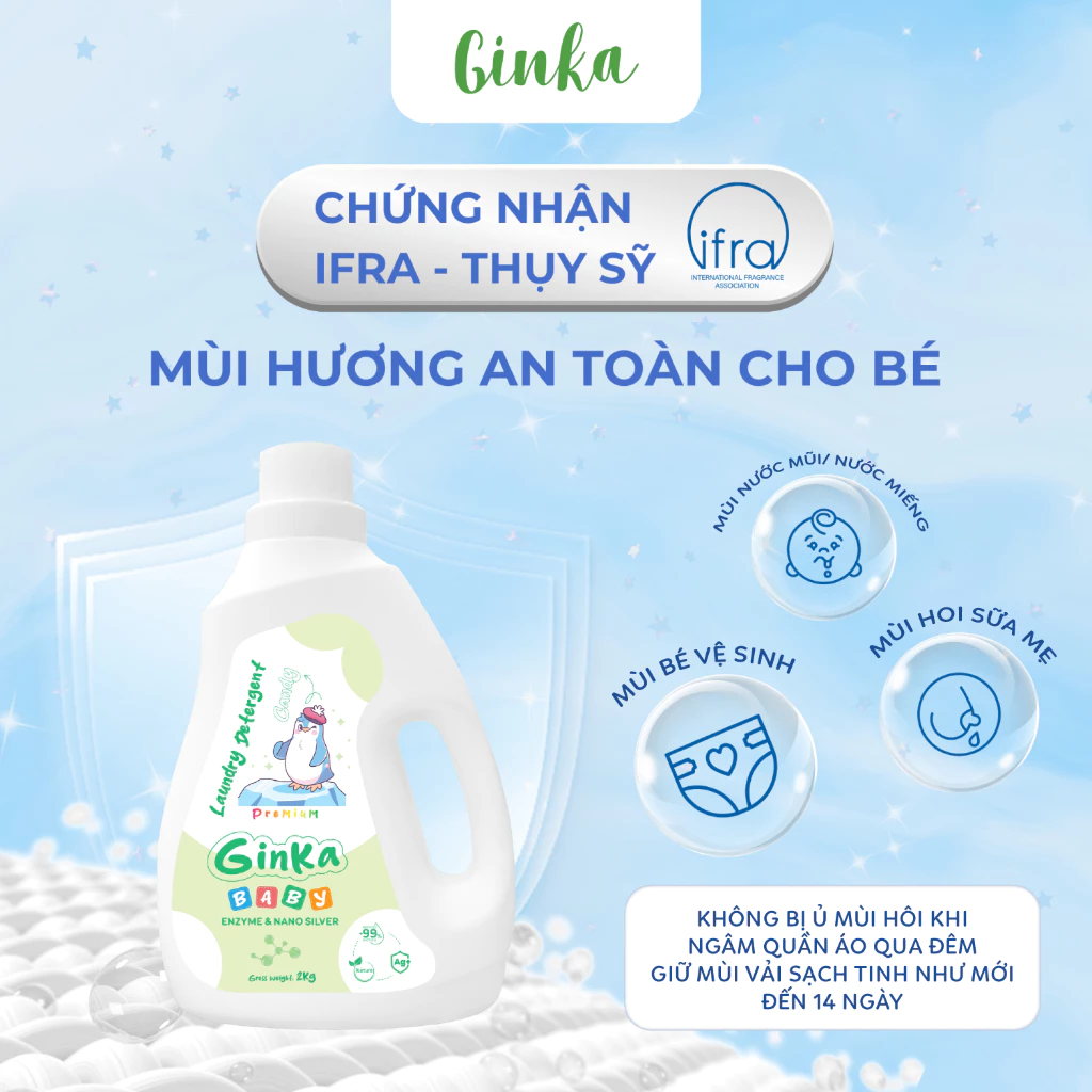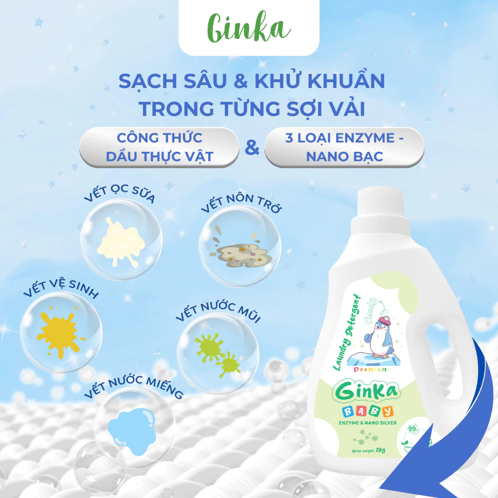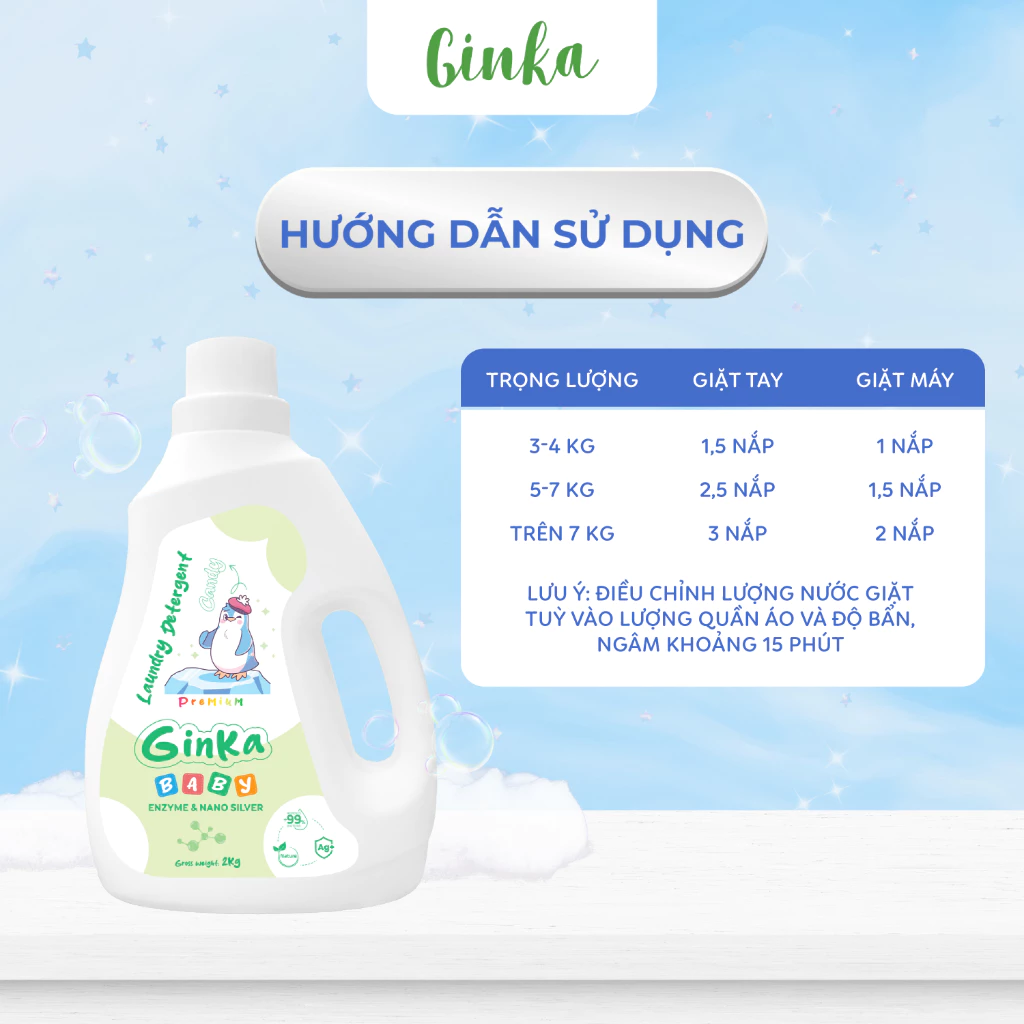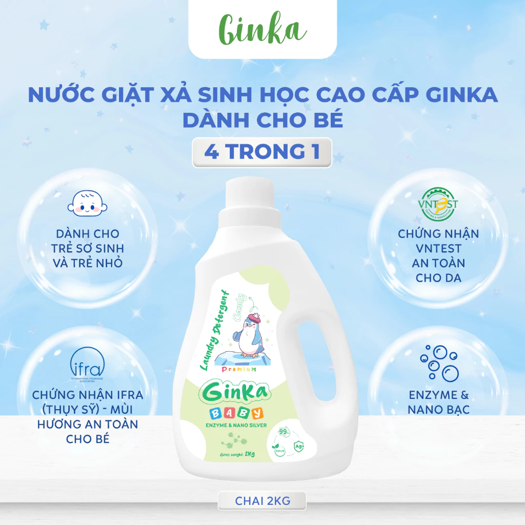 NƯỚC GIẶT XẢ SINH HỌC GINKA 4IN1 - DÀNH CHO TRẺ SƠ SINH VÀ TRẺ NHỎ - 2KG