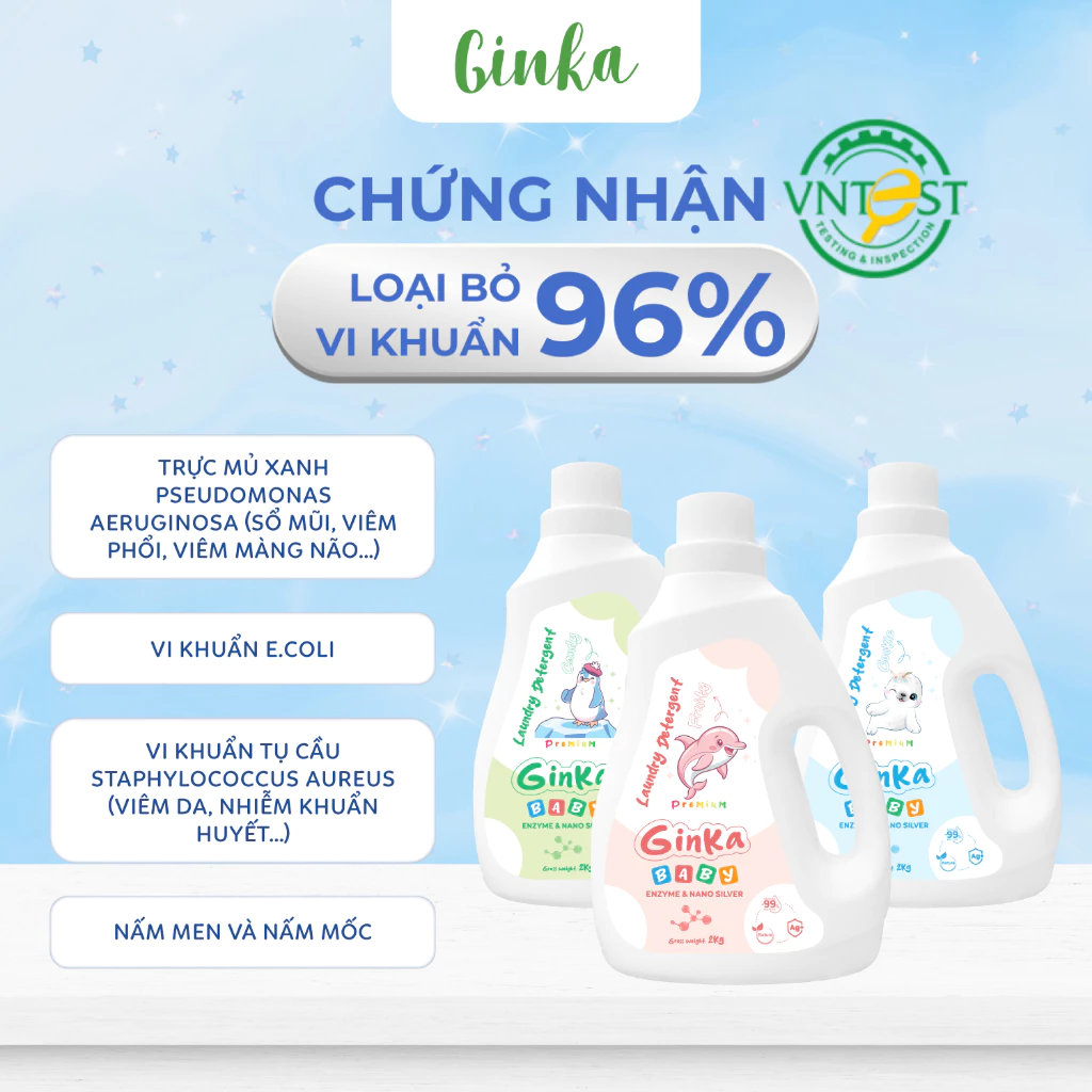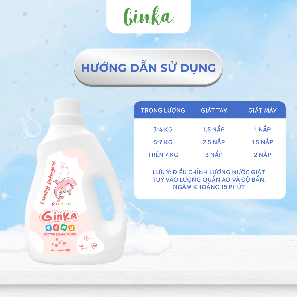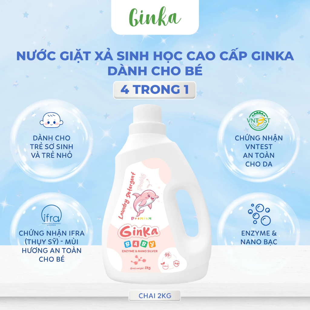NƯỚC GIẶT XẢ SINH HỌC GINKA 4IN1 - DÀNH CHO TRẺ SƠ SINH VÀ TRẺ NHỎ - 2KG