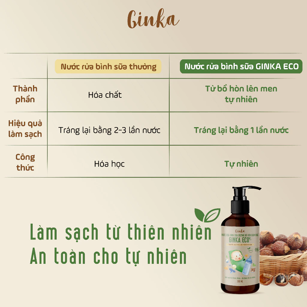 Nước rửa bình sữa enzyme bồ hòn đậm đặc GINKA ECO 300ml