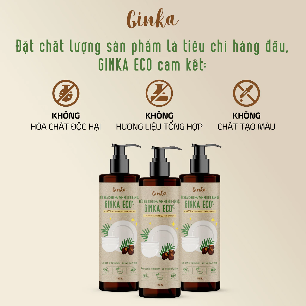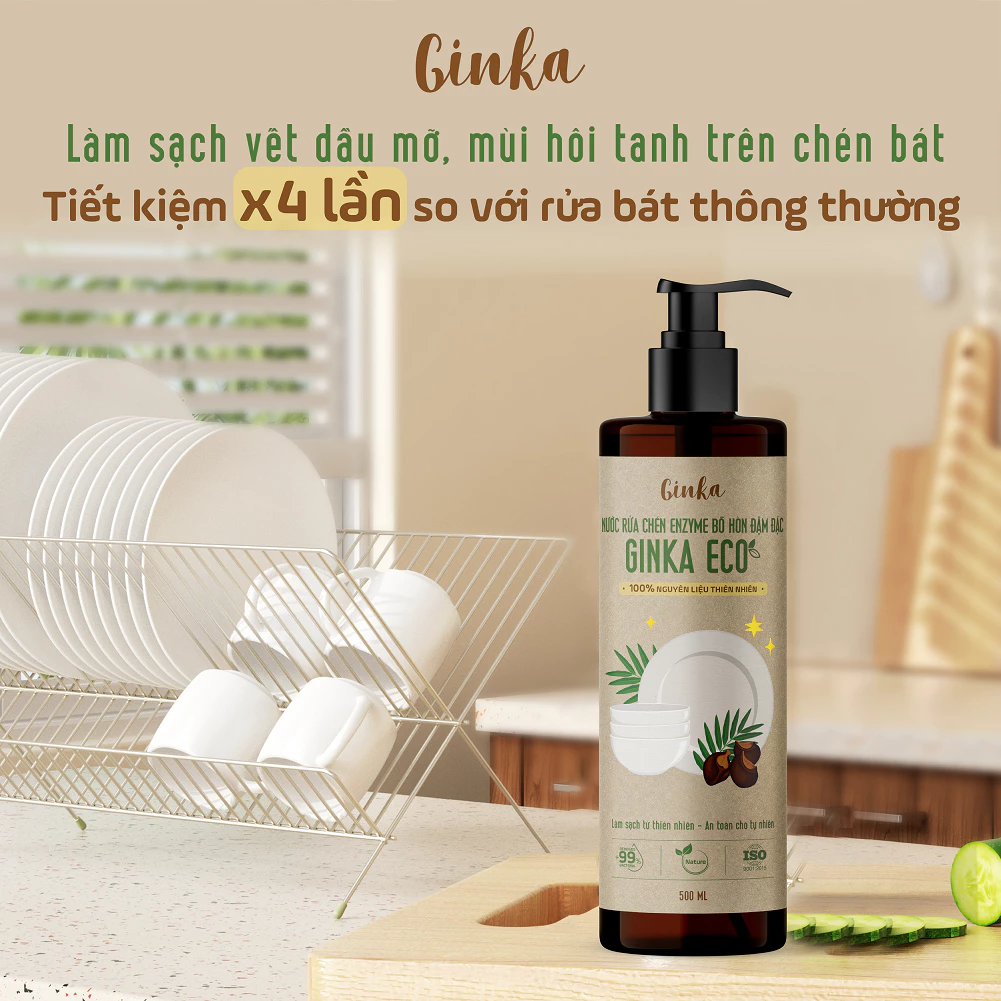 Nước rửa chén enzyme bồ hòn đậm đặc GINKA ECO 500ml
